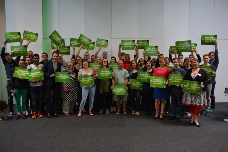 Bayern bunt, sicher und frei zu gestalten ist für die Grünen eine wichtige Voraussetzung für den Zusammenhalt und die soziale Gerechtigkeit. Dazu gehört auch eine klare Ablehnung des Polizeiaufgabengesetzes, gegen welches der gesamte Saal mit Schildern und Bannern protestierte.